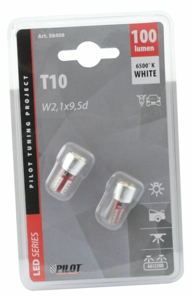 2 LED-Glassockellampen T10 12 V weiss W5W