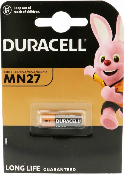 Alkaline-Batterien 12 V - bis zu 5 Jahre lagerfähig - 8LR732, L828, LR27 Duracell - MN27 - Packung à 1 Stück