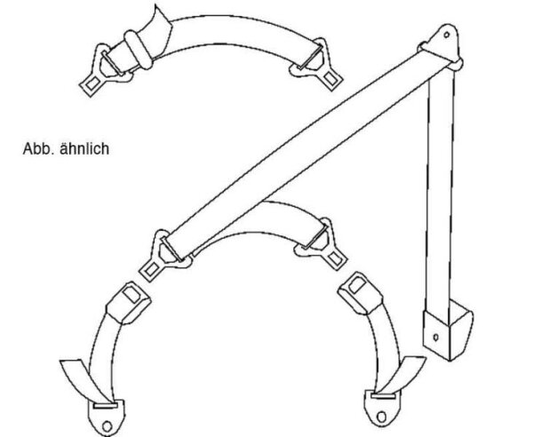 3-point special safety belt, belt length 3.6 m, can be shortened. Lap belt adapter length adjustable, belt whip length adjustable 30-60 cm. With belt roller to be mounted horizontally for retrofitting the 3rd safety belt e.g. for family benches T5.