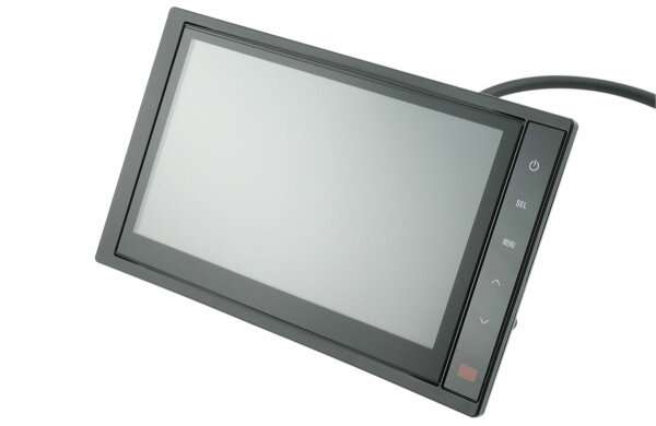 - 4 Kameraeingänge - Shuttersteuerung - Auflösung 800 x 480 Pixel - Helligkeit 500cd/m2 - Schutzklasse IP95 - Steckersystem Mini-DIN (f) 12/24 V