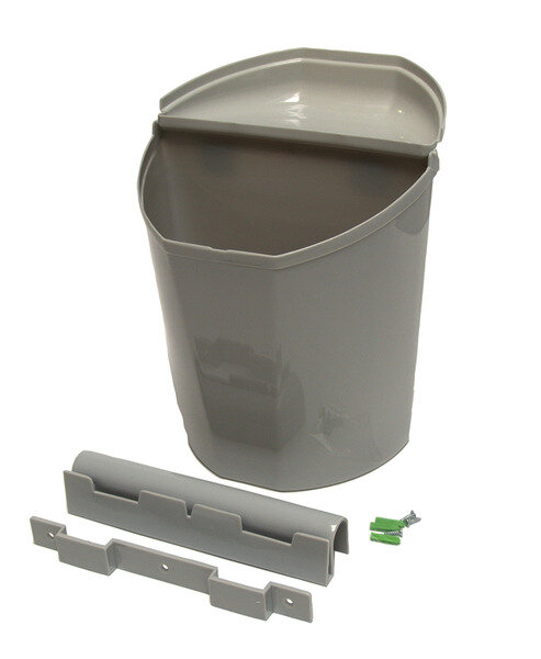 Abfalleimer mit Deckel. Inklusive 2 Einhänge-Schienen: 1 Schiene zur Festmontage z.B. Wand oder Reisemobiltür und 1 Schiene zum Einhängen z.B. an Verandastange oder Ähnlichem.