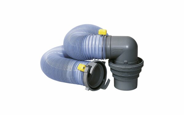 Bestehend aus: 300 cm Abwasserschlauch, Boden-Adapter und Schlauchanschlussstücken.