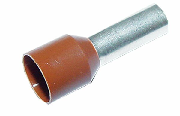 Ader-Endhülsen, isoliert mit Kunststoffkragen, Norm. Ausf. Elektrolytkupfer verzinnt braun 10.0mm2 mit Kunststoffkragen, verzinnt