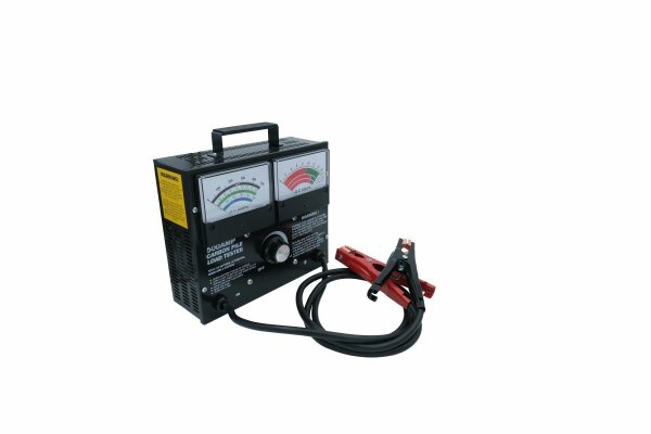 Batterie-Prüfgerät mit analogen Volt- & Amperemeter für präzise Belastungstests von 12 V Blei-Säure-Batterien*, Lade- und Anlasssystemen. Stufenloser Belastungsstrom von 0...500 Ampère; eindeutige Resultate dank farbiger Skalen; Robustes Metallgehäuse (27x23x11cm) mit 90cm langen Kabel und grossen Batterieklemmen; eingebauter Warnsummer für Belastungstests von Blei-Säure-Batterien