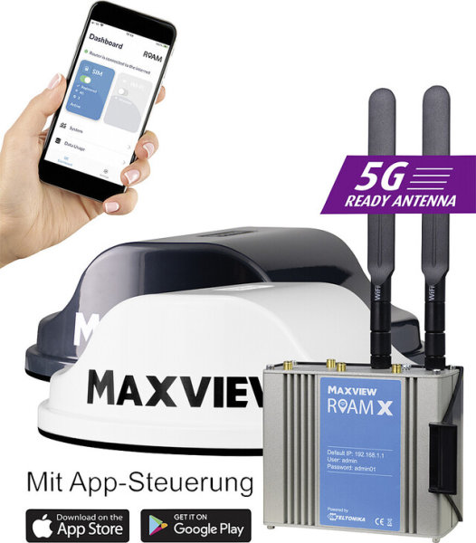 La combinaison idéale : le routeur haute performance (4G) et la puissante antenne 5G LTE. Cette combinaison est faite pour le campeur exigeant qui souhaite utiliser son camping-car ou sa caravane comme bureau. Les signaux LTE sont reçus via l'antenne externe et les signaux WiFi sont reçus via les antennes tiges montées sur le routeur. Le routeur a été testé sur des véhicules roulants et est donc prédestiné à être installé dans un véhicule. Le routeur peut être configuré rapidement et facilement à l'aide de l'application gratuite ROAM X pour les systèmes d'exploitation Android et IOS.