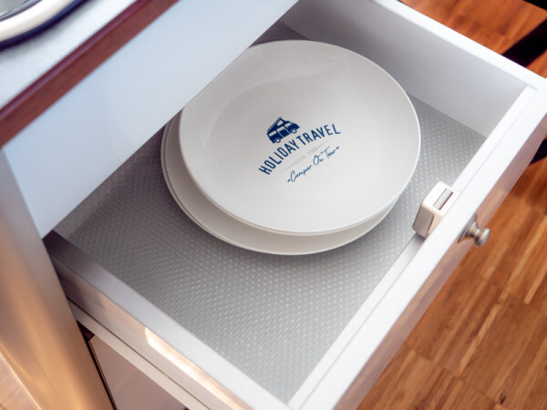 Die transparente Antirutschmatte ist vielseitig einsetzbar z.B. für Schränke, Schubladen, Kühlschränke. Die beidseitig strukturierte Matte ist aus EVA (400 g/m²) und hat eine geräuschdämmende Wirkung z.B. während der Fahrt im Wohnmobil. Sie ist individuell zuschneidbar, wiederverwendbar, abwaschbar, wasserbeständig und reißfest.