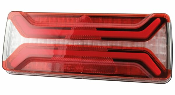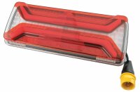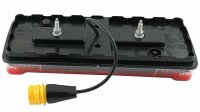 - Visibilité accrue grâce aux grandes dimensions des surfaces lumineuses - Contrôle de panne de clignotan intégré - Lentille résistante aux produits chimiques et aux rayures - Certifié classe de protection IP6K9K - Fixation possible des deux côtés **Disponible sans éclairage de plaque d’immatriculation sur demande** 350 x 140 x 54 mm, ASS2 à 7 pôles, LCG, éclairage de plaque