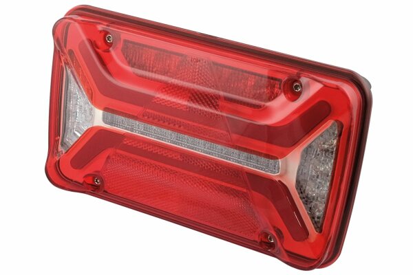 - LED - Heckleuchte mit wechselbarer Lichtscheibe - Ersatzlichtscheibe beidseitig verwendbar - Innovative Glowing Body Technologie als Standlicht - Erhöhte Sichtbarkeit durch großdimensionierte Leuchtfläche der Funktionen Stand- & Bremslicht - Dynamischer Fahrtrichtungsanzeiger - ISO-Impuls 13207-1 als Standard (bei 24 V) - Chemikalien - und kratzbeständige Lichtscheibe - SMCG (Sidemarker Control Gear) inkludiert gemäß der ECE 48, Rev. 6 - Intelligente Teilabschaltung des Bremslichtes bei Aktivierung der Nebelschlussleuchte - Optional mit 2 pol. Anschluss auf der LeuchtenRückseite (Verteilerfunktion) **Version Trailer** 240 x 140 x 79 mm, 7-Pol AMP+ 2x SuperSeal, SMCG