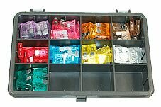 Contenu: fusibles ATO 3 A, 4 A, 5 A, 7.5 A, 10 A, 15 A, 20 A, 25 A, 30 A, 10 de chaque, avec LED qui s’allume en cas de rupture SAE J 1284 (ISO 8820-3, DIN 72581) 180 x 128 x 32 mm
