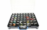 Assortiment de fusibles standard dans les tailles et versions les plus courantes dans la mallette d'assortiment en plastique avec couvercle transparent du système Sortimo T-Boxx avec 48 compartiments. L'assemblage / la classification peut être modifié en enlevant ou en combinant avec d'autres boîtes d'insertion du système T-Boxx. Valeur matérielle: CHF 788.- Contenu: 1'012 fusibles standard assortis (ATO, Mini, Maxi, Torpedo, fusibles de verre, Low Profile) et porte fusibles. 1’012 pièces