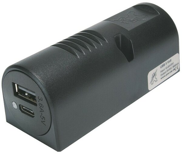 • Zum Laden und Betreiben elektronischer Geräte, die über 5 Volt USB geladen werden können. Befestigung mittels beiliegender Schrauben. Kabelanschluss vorkonfektioniert, ca. 15 cm, 0,5 mm2. Input 8-34 V DC, E1 Zulassung, Eigenverbrauch ≤ 1 mA.