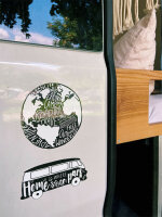 La maison est là où vous la garez ! Un hommage à la maison roulante sur quatre roues. L'autocollant est fabriqué à partir d'un film adhésif polymère de haute qualité. Parfait pour la voiture, le bus, le camping-car, le mobile-home ou toute autre surface en plein air.