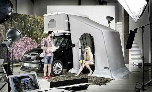 connected to the AirPass roof tent. The awning can be put up or taken down in under five minutes and can be stored in the AirPass roof tent. Can be mounted on both sides.