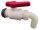 Ball valve with tank feedthrough and angled outlet with metric male thread and 90° elbow for DN 25 hose with food NBR O-ring.