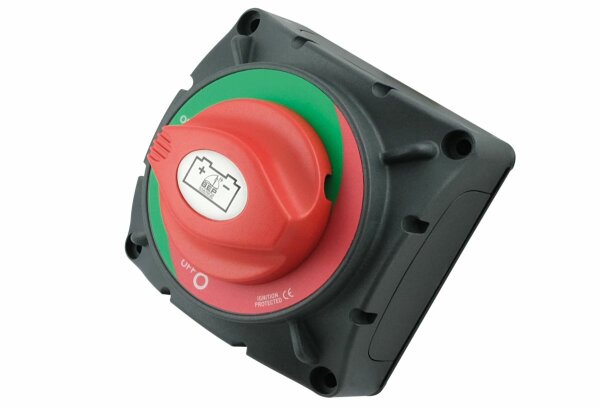 Zusatzinformation: - 0 - 1 - 600 A bei 12/24 V, 2’500 A max. 10 Sek. - nicht unter Last schaltbar - Kabelanschluss: 2 x M12 - Versenkter Einbau möglich