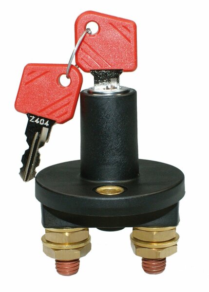 Schalterform: Drehschalter Funktion mechanisch: rastend Funktion elektrisch: Schliesser Spannung: 12 bis 24 Volt Belastbarkeit: 75 Ampère Einbauloch: rund Durchmesser: 24 mm Beleuchtung: Nein Wasserdicht: Nein IP-Grad: 61 Zusatzinformation: - 0 - 1 - Lochabstand: 39mm, Einbau-ø: 24mm, ø 58 x 102mm - 75A - 200A/5s - Kabelanschluss: 2 x M10 - Ersatzschlüssel: 520000 - Schlüssel nur in Position „Aus“ abziehbar. max. 24 V 75 A, IP61 (verschiedene Schlüssel-Nr.)