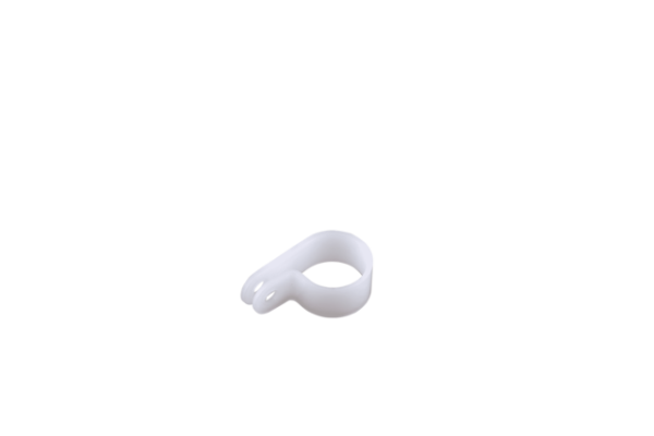 Wärmebeständige und stabile Befestigungsschelle aus naturfarbenem Kunststoff.