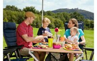 Der Berger Carry Falttisch ist ein stabiler Tisch mit Aluminiumgestänge. Durch die viergeteilte Bambustischplatte lässt sich der Tisch extrem platzsparend zusammenfalten und verstauen. Die Beine sind stufenlos höhenverstellbar von 42 - 65 Zentimetern.