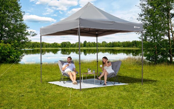 Dieser Faltpavillon ist der perfekte Sonnenschutz auf Reisen. Durch das Faltgestänge sehr schnell auf- und abgebaut.