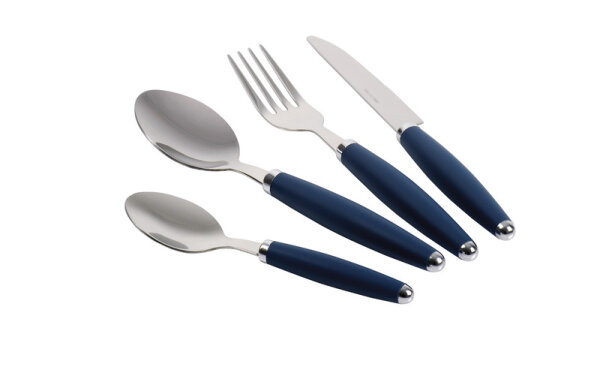Gefertigt aus hochwertigem Edelstahl 18/10 mit Kunststoffgriff in dunkelblau. Die Farbkombination paßt perfekt zu allen HOLIDAY TRAVEL Produkten, aber auch zu vielen Camp4 Geschirrdekoren sowie im maritimen Bereich. Das Besteckset ist spülmaschinengeeignet und lebensmittelecht.