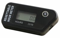 Stundenzähler welcher auf Zündimpulse reagiert. Abgegriffen wird das Signal induktiv durch umwickeln des Zünkabels mit dem Signalkabel. • 2 Zähler, Total Betriebsstunden und Rückstellbarer Teilstundenzähler • Zählt nur wenn der Motor läuft (Pick-up Abgriff) • 0 - 99999 h / 0.1 h • Wasserdicht IP68 • Batterielaufzeit 3-5 Jahre, Batterie nicht ersetzbar • Garantie 1 Jahr • Montage auf Panel batteriebetrieben, 2 Zähler