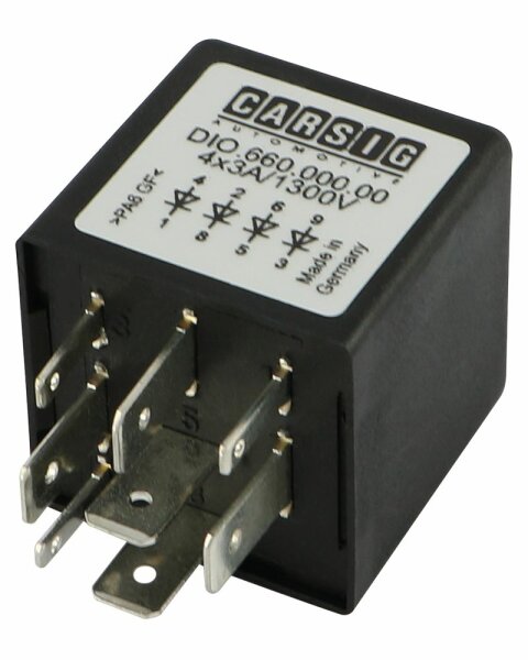 4 -> 1 = 86 -> 1 2 -> 8 = 30 -> 87 6 -> 5 = 85 -> 87a 9 -> 3 1’300 V / 4 x 3 Amp.