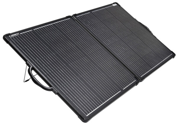 Boîtier solaire pliable 120W avec sortie de charge USB 5V / 1.2A dans le contrôleur de charge.3 câbles adaptateurs inclus (pinces crocodiles / prise allume-cigare / connecteur type mini Anderson)< p> Données techniques :Puissance : 120 WTension nominale (Vmp) : 18 VCourant nominal (Imp) : 7,78 A< p>Tolérance de puissance : +/- 3 % Tension en circuit ouvert (Voc) : 21,6 V Courant de court-circuit (Isc) : 8,4 A Efficacité des cellules : 20,6 %Dimensions (L x l x H) : 1060 x 620 x 25 mmDimensions plié (L x l x H) : 620 x 525 x 50 mm< /p>Poids : environ 6 kg