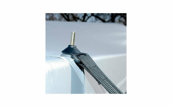 • Die Sturmgurte werden mit Kunststoffadaptern am Gestängedorn befestigt