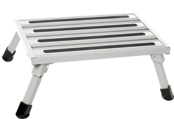 Brunner Trittstufe mit einklappbaren Standbeinen, super stabil. Robuste Konstruktion aus pulverlackiertem Aluminium. Hohe Standfestigkeit. Mit großflächiger, rutschfester Trittfläche. Sehr kompaktes Maß. In der XL-Version mit noch mehr Sicherheit durch großzügig vergrößerte Trittfläche. GoStep R mit 4-fach höhenverstellbaren Standbeinen.