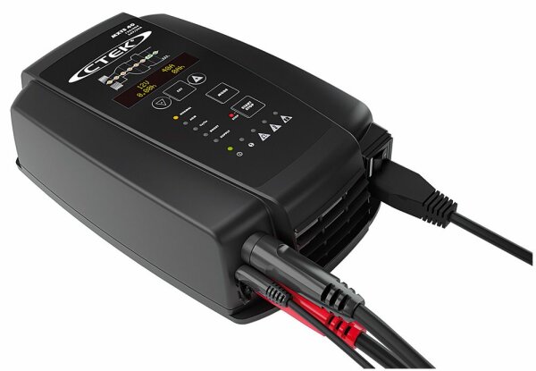 8-stufig, vollautomatisch, für Nass-, MF-, AGM-, Calcium/Calcium- und GEL-Batterien, mit Supply- und Recond-Funktion (Boost), Kabellänge 2.5m, 12V: 20-1200Ah, 24V: 10-600Ah 254x160x76mm
