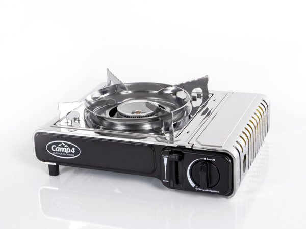 Camp4 Gaskartuschenkocher mit Zündsicherung GOURMET, Edelstahl