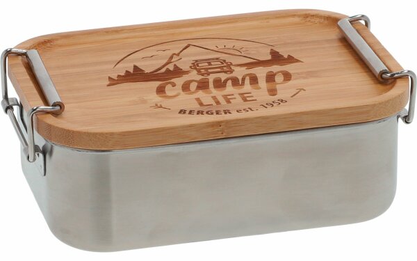 Camplife Edelstahldose mit Bambusdeckel und Bügel