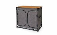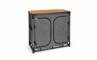 Die vielseitige und schnell aufgebaute Küchenbox darf auf keiner Reise fehlen. Sie überzeugt bei geringem Platzbedarf, mit einer Platte von 85 x 48 Zentimeter durch viel Stauraum mit den sechs MDF Einlegeböden sowie den jeweils drei Taschen auf jeder Seite. Die Küchenbox besteht zudem aus 100% recyeltem Polyester.