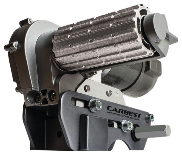 Carbest Cara-Move maneuvering aid for caravans with remote control. The manual caravan maneuvering aid moves single and double axles up to a maximum total weight of 2250 kg. The rollers are swiveled on and off manually. Power consumption on level ground: approx. 25 A. Max. Current consumption (1100 kg Wohnwaen single-axle, slope 25%): 80 A.Max. Climbing capacity by total weight:15% - 2500 kg20% - 2250 kg25% - 2000 kg