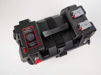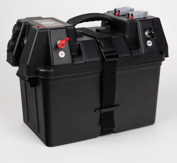 Diese Batteriebox ist ein multifunktionaler Batteriekasten. Die Energy Station ist aus einem robusten Kunststoff hergestellt und bietet vielfältige Anschlussmöglichkeiten. Sicherungen sind vorinstalliert. Lieferumfang inkl. Spanngurt zum Fixieren des Deckels und Spanngurt-Ösen.In den Deckel sind integriert:2x 12V Steckdosen1x USB Doppelsteckdose (2x 2,4A)1x Batterie-Voltmeter2x Hochstrom-Batteriesteckverbinder zum Anschluss von Solarpanels und anderem ZubehörAußenklemmen (+/-)