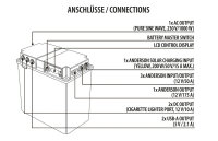 Tragbare ALL-IN-ONE Power-Lösung. Energie immer und überall. Optimal geeignet für die Nutzung im Fahrzeug oder für Outdoor-Aktivitäten aller Art.Produkteigenschaften:Integrierter MPPT-Solarladeregler 15 AIntegriertes MultifunktionsdisplayBatterietrennschalterWiederaufladbar über: Solarpanel oder 230 V StromnetzTechnische Daten:LiFePO4-Batterie mit BMS: 80 Ah (12,8V)Sinus-Wechselrichter: 1000 WEingebauter MPPT-Solarladeregler 15 AIntegriertes MultifunktionsdisplayBatterietrennschalterAnschlussmöglichkeiten:1x 230 V Steckdose2x 12 V Steckdose2x USB-Anschluss (5 V / 2,1 A)3x 50 A Anderson-Anschluss1x Anderson Solarlade-Anschluss1x 175 A Anderson-Anschluss