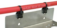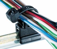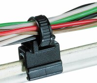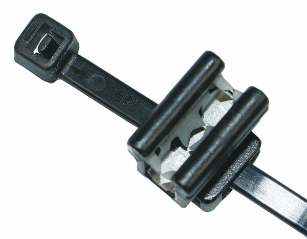 für Wandstärken von 1.0-3.0mm, Kabelbinderschlaufe oben an der Klemme, schwarz, Temperatur: -40°C bis +105°C, Polyamid 6.6 hitzestabilisiert (PA66HS), schwer entflammbar UL94V2