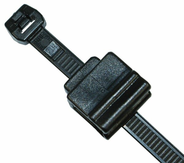 für Wandstärken von 1.0-3.0mm, Kabelbinderschlaufe seitlich an der Klemme, schwarz, Temperatur: -40°C bis +105°C, Polyamid 6.6 hitzestabilisiert (PA66HS), schwer entflammbar UL94V2