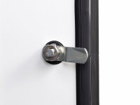 Clapet pour bouteille de gaz avec coins de 83 mm de rayon, butée (vue de l'extérieur) à droite, matériel de montage et 2 clés inclus.