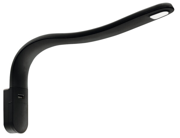 Lampe col de cygne LED, revêtue de silicone, avec prise de charge USB, tête plate. Flux lumineux 80 lm, blanc neutre, 1,2W