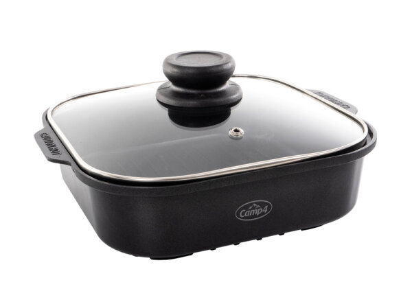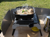 Grillpfanne mit hohem Rand als optimale Erweiterung des Gaskartuschenkochers Cook´n´Fold (Art.-Nr. 706622). Konzipiert um auch mit kleiner Flamme hohe Leistung zu erreichen. Um schonend und gleichmäßig noch mehr auf reduziertem Platz zu zubereiten.