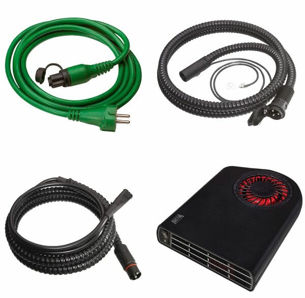Reine Innenraumvorwärmung – steigen Sie in ein warmes Fahrzeug mit eisfreien Scheiben ein. Inhalt Kit: - Heizlüfter Termini II 1’900 Watt - 430065 - Termini Anschlusskabel 1.75 m - 460860 - MiniPlug Zuleitungskabel 2.5 m - 460955 - MiniPlug Anschlusskabel 1.5 m - 460915 230 VAC, 1’900 W, Innenlüfter + Anschlusskabel
