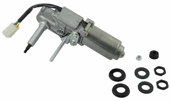 - Wischermotor ohne Schalter mit Parkstellung - Wischwinkel 110° - Wischerarmbefestigung Konus M6 - Motorbefestigung M16x1 mm - Abstützung 57 mm, M8 - Wellenlänge: 56 mm - Klemmlänge L: 30 mm - max. Wischerarm / Blatt 650 mm Anschlussplan: - Kabel Rot Wischermotor Versorgung + - Kabel Gelb Wischermotor Endabschaltung + - Kabel Grün Wischermotor Endabschaltung Weiterführung zu Schalter - Kabel Schwarz Wischermotor Masse -