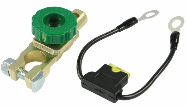 Kabel zur Erhaltung des Radiocodes, Uhr etc. mit 20 Amp. Sicherung. Wenn der Batterie-Hauptstrom unterbrochen ist, brennt beim Anlassen die Sicherung durch. Kann ohne Kabel als Batterie-Hauptschalter benützt werden. mit 20 Ampère Sicherung