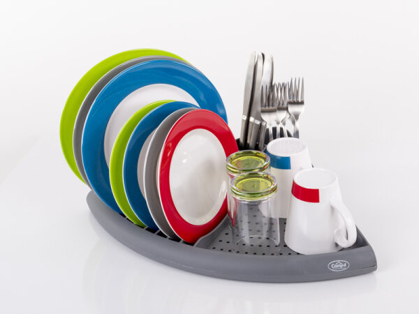 2-piece dish drainer idwal for corners. Drip tray removable for easy pouring.