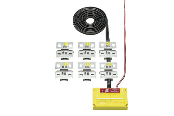 Haute tension en un temps record - possible grâce à STOP&GO ! Grâce à une technique de raccordement IDC ingénieuse, l'utilisation fastidieuse de vis sur les plaques de contact haute tension en acier inoxydable PLUS et MOINS, qui ont fait leurs preuves depuis plus de dix ans, n'est plus nécessaire. La technique dite à déplacement d'isolant (IDC) permet d'assurer le contact avec le câble haute tension bipolaire par simple compression de la plaque. Grâce à cette conception bipolaire - PLUS et MOINS - il est possible, quelle que soit la nature du compartiment moteur et même dans les véhicules modernes à forte proportion de matériaux non conducteurs comme le plastique, de repousser la fouine par un choc électrique sans danger, mais efficace (comparable à celui des clôtures de prairie). Les possibilités de fixation étendues des plaques de contact en acier inoxydable facilitent en outre l'installation et offrent encore plus de flexibilité, en particulier pour les compartiments moteur de plus en plus compacts. Le raccordement à la borne 15 n'est pas nécessaire en raison de la technologie des capteurs. Grâce à un curseur de contact monté directement sur l'appareil, l'installation d'un interrupteur de contact de capot n'est plus nécessaire.