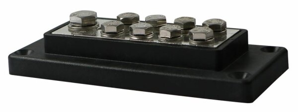 - 1 x M8, max. 70 mm² - 8 x M6, max. 16 mm² - Max. 750 A au total - Vis de montage incluses 126 x 55 x 20 mm, 1 x M8, 8 x M6