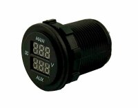 Doppelvoltmeter für die Anzeige der Spannungen von Starter und Verbraucherbatterien in Wohnmobilen oder bei jeglichen Doppelbatteriesystemen. Passend für Spannungsbereiche von 10 - 60 V, sehr geringer Eigenstrombedarf. Anschluss mittels 6.3 mm Flachstecker, siehe Datenblatt. Abmessungen gemäss Datenblatt unter Zusatzinformationen. ø 29 mm , 10 - 60 V, für Wohnmobile und Doppelbatteriesysteme