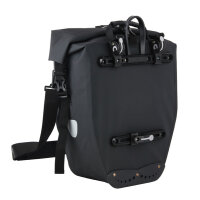 Die universale wasserdichte Tasche für den Gepäckträger bietet perfekten Schutz für Ihre Ausrüstung. Das robuste 500D PVC-Material und der praktische Rollverschluss machen sie ideal für jedes Wetter. Mit einem Volumen von 25,4 l und einer zusätzlichen Innentasche mit Reißverschluss bleibt alles sicher verstaut. Das Klicksystem ermöglicht eine einfache Befestigung an Gepäckträgern mit 8-16 mm Durchmesser. Verstellbare Trageschlaufe und Schultergurt garantieren komfortablen Transport. In klassischem Schwarz und mit durchdachten Details – ideal für jede Fahrt!Technische Daten:Unempfindliches, wasserdichtes 500D PVC- MaterialRollverschlussGeräumige Innentasche mit 25,4 l VolumenZusätzliche Innentasche mit ReißverschlussInnovatives Klicksystem zur einfachen Befestigung/ MitnahmeEinstellbare Trageschlaufe/ SchultergurtKlicksystem geeignet für verschiedene Gepäckträger (8- 16mm Durchmesser)Abmessungen Außen (H x L x B): ca. 56 x 30 x 15 cmErhältliche Farbvarianten: schwarz