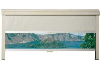 Aluminium-coated sun protection and darkening roller blind. Mosquito net (white) and blackout blind are pulled from top to bottom. Tightly closing, so that even the smallest mosquitoes have to stay outside. Window roller blind with low space requirement. Stepless height adjustment. Window roller blind can be shortened in height. Almost complete blackout. High quality processed draw quality. The roller blind only applies 3.5cm. Total width = window cutout + 70mm.